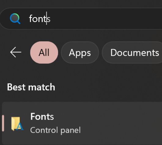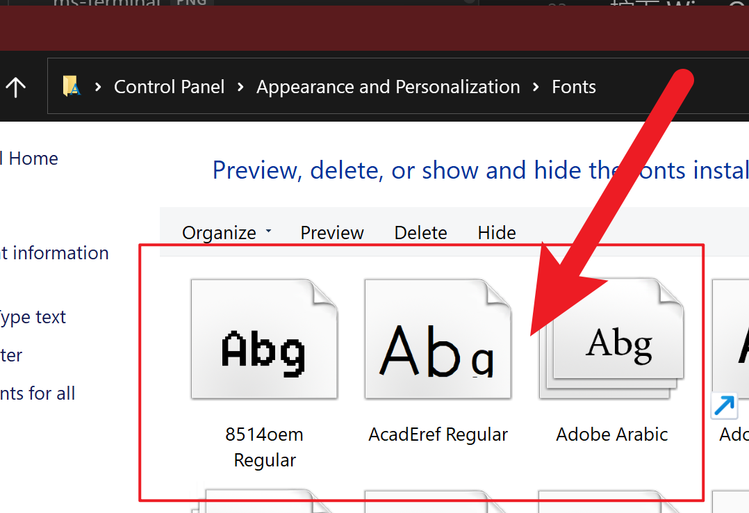 1. 按下 Win+Q 搜索 字体,或者直接打开控制面板,然后打开字体页面