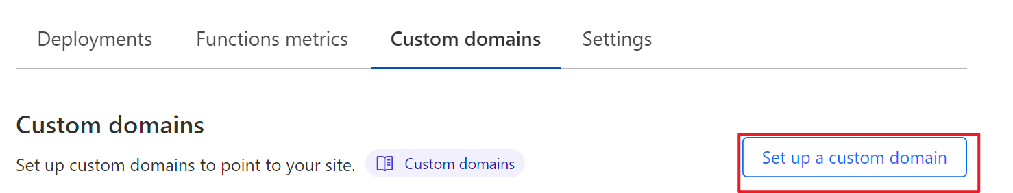 构建成功后,同样导航到 Workers & Pages 页面,进入刚刚构建的应用中,定位到 Custom domains 中 然后选择 Set up a custom domain 填入之前 ^a1b1b3 申请的域名,完成发布即可。
