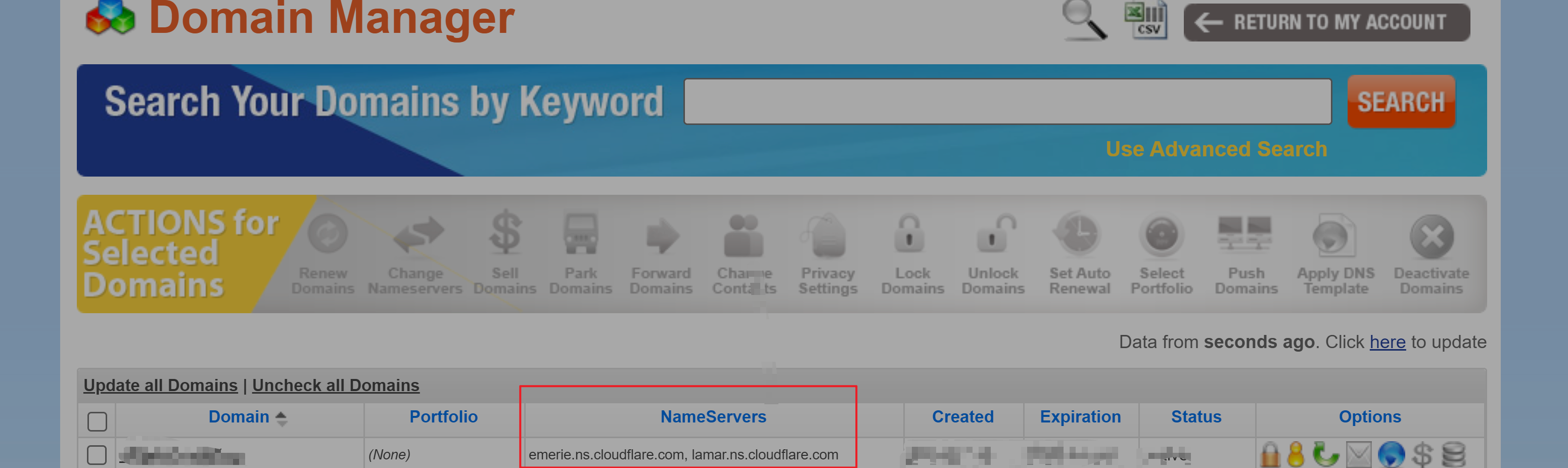 这里给了两个 Cloudflare DNS解析服务器 ,要记录下来。然后到你获得域名的地方去配置域名,将域名的 域名服务器 配置填写成 Cloudflare DNS解析服务器 然后保存,等待一段时间即可。