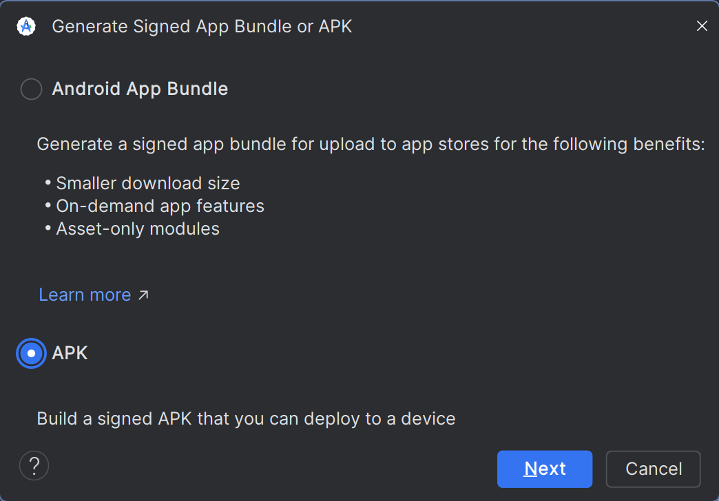 然后选择 APK 继续